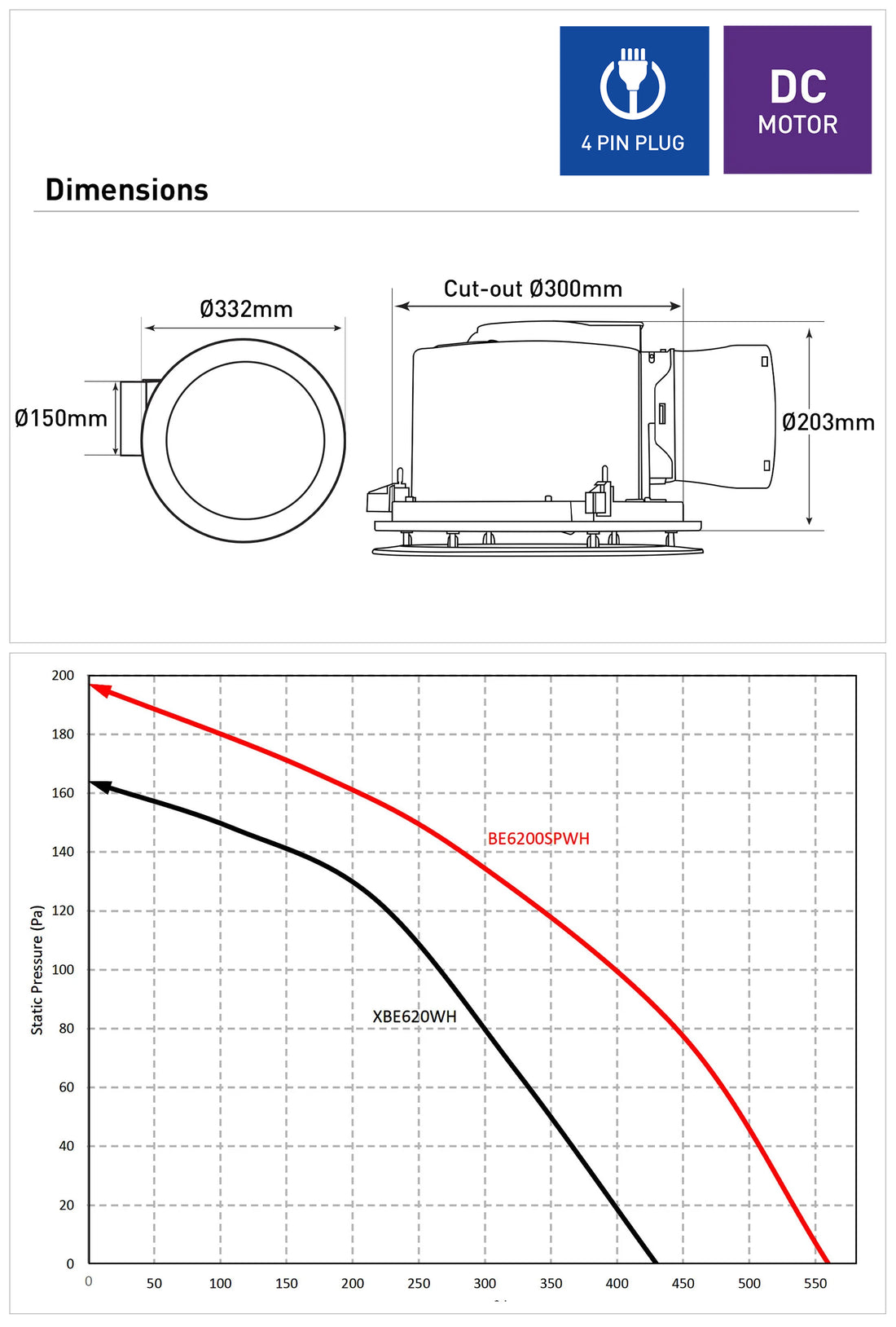 Affinity 300 DC Exhaust Fan with Run on Timer (4 Pin Plug)