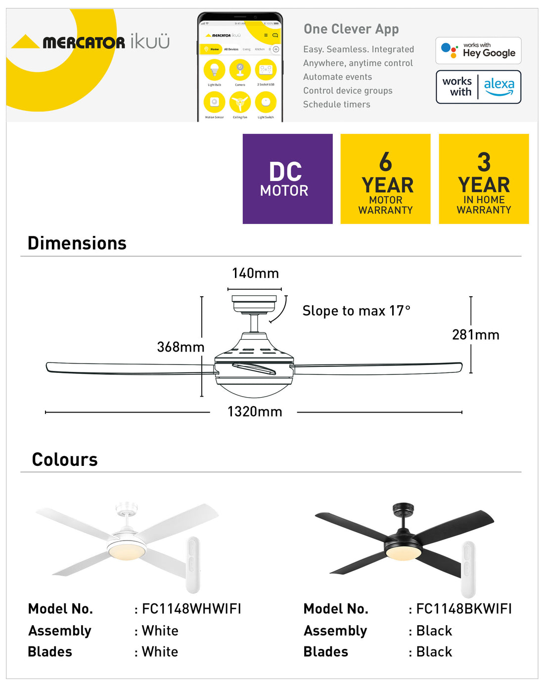 Anova 132cm DC Ikuü Smart Wi-Fi Ceiling Fan with LED Light and Remote