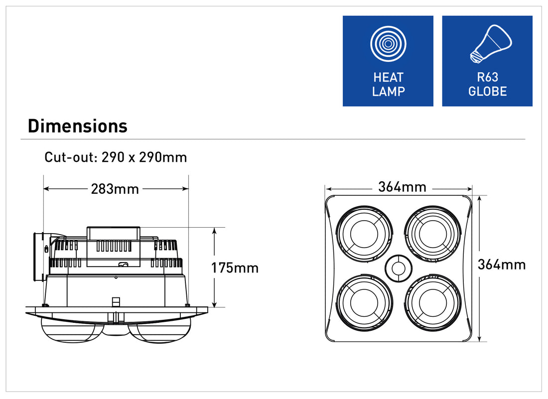 - Wall controller with 4 switches included for separate heat, light, and fan control
