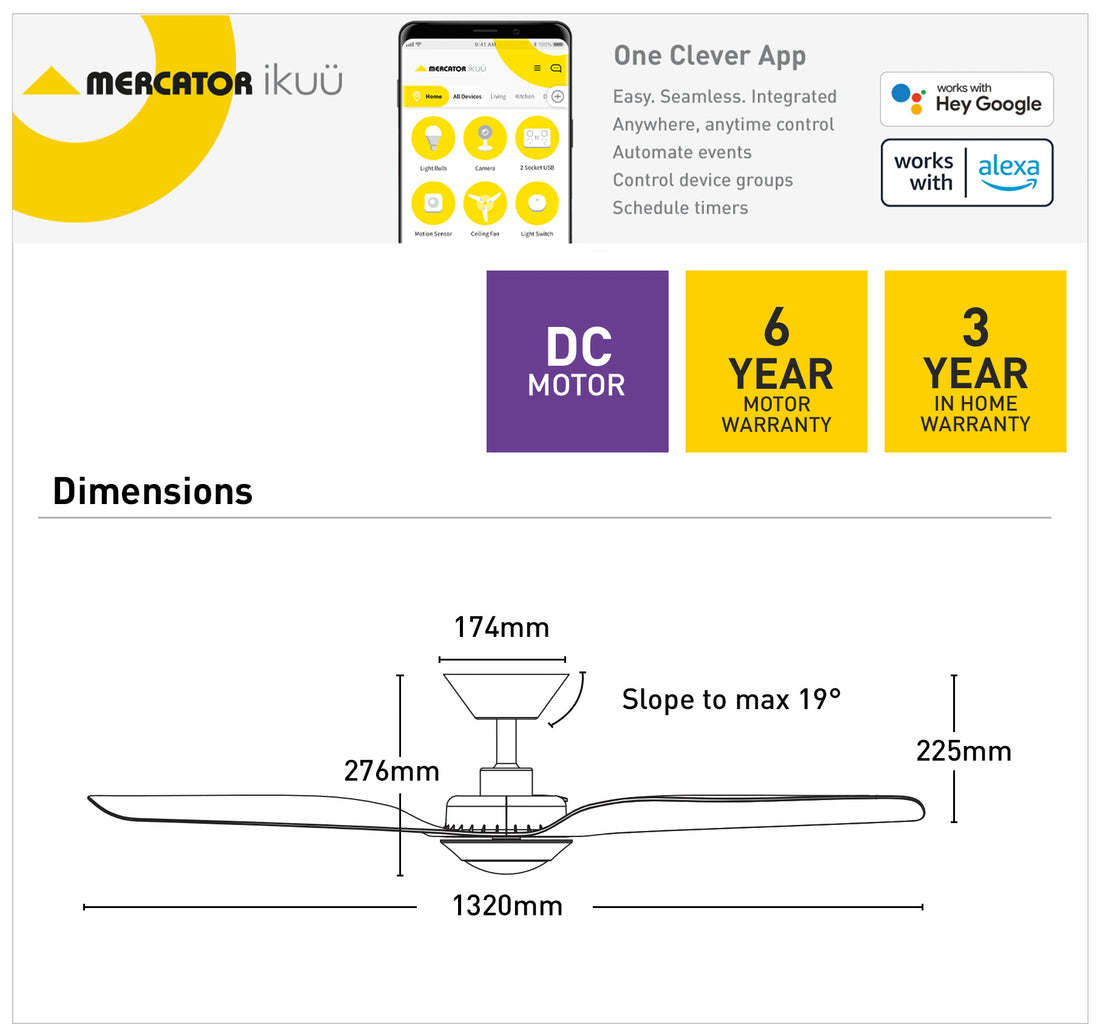 Casa 132cm DC Ikuü Smart Wi-Fi Ceiling Fan with LED Light and Remote