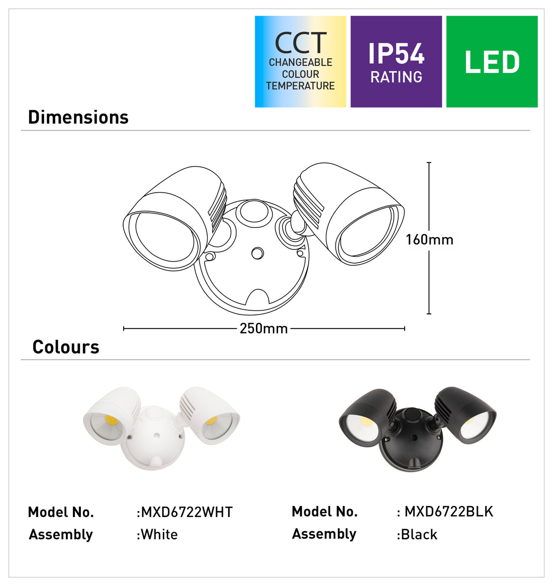 - High impact strength UV stabilised plastic base and aluminum diecast lamp head for superior heat dissipation