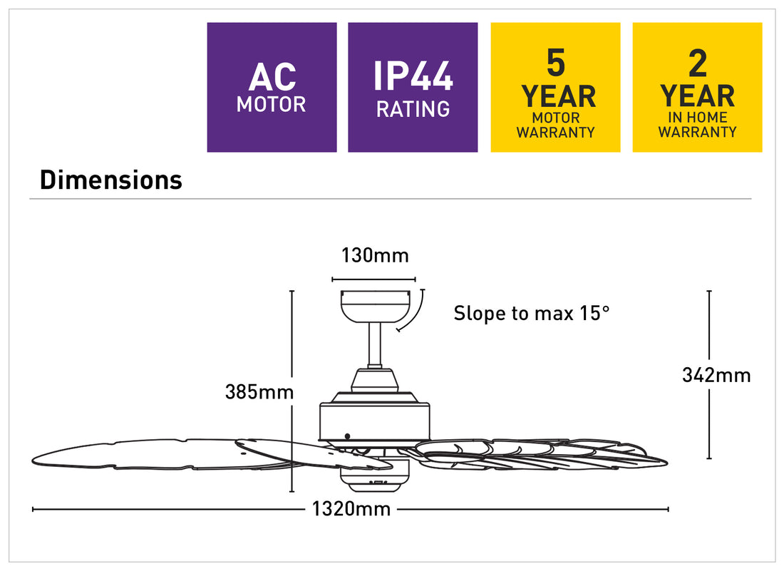 - 132cm ceiling fans with IP44 rating