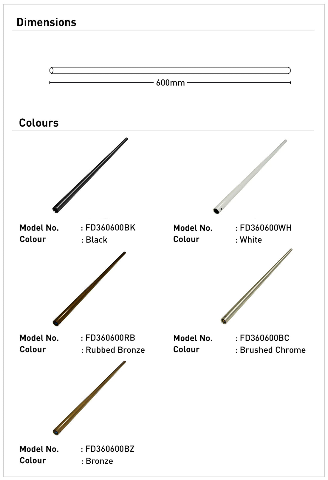 - NOTE: for a complete kit, downrod must be ordered with a wiring loom (sold separately).
