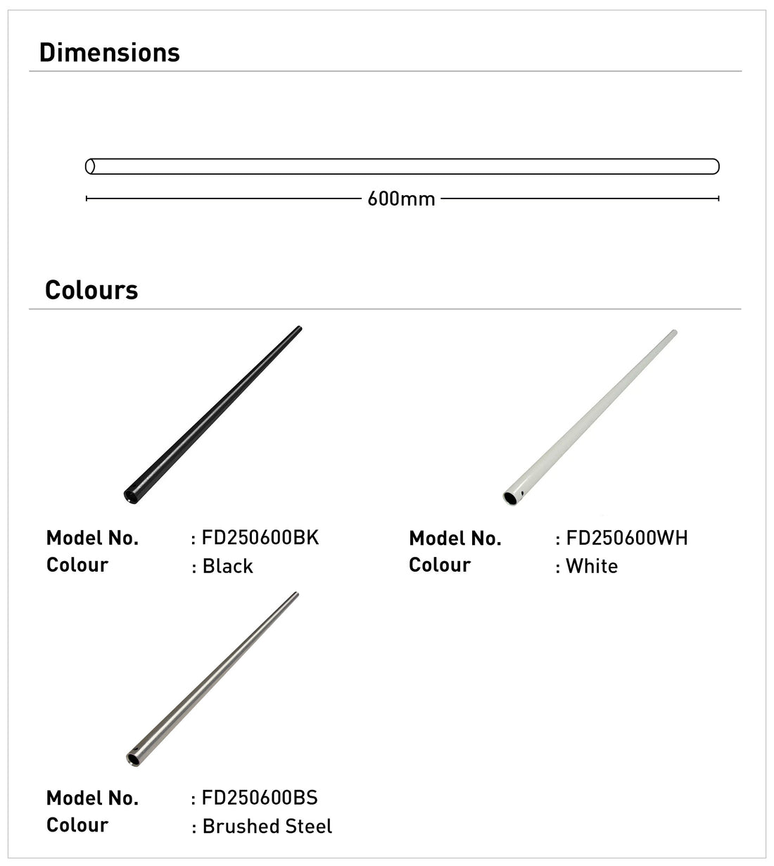 This 600mm extension rod is suitable for the Mercator Caprice Ceiling Fan.