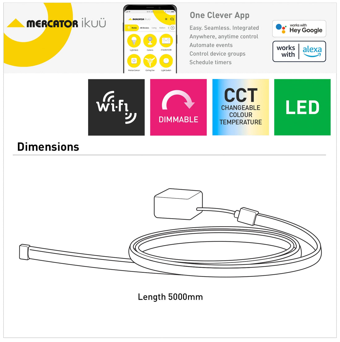 Ikuü Smart Wi-Fi 5m COB Strip Light