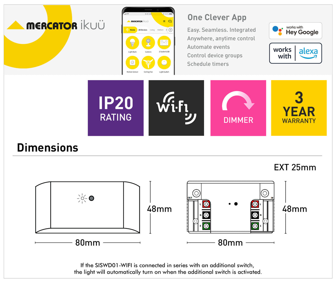 Ikuü Smart Wi-Fi Inline Switch With Dimmer