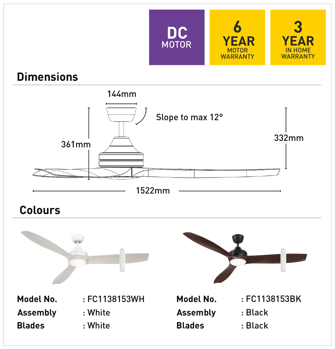 Lora 152cm DC Ceiling Fan with LED Light and Remote