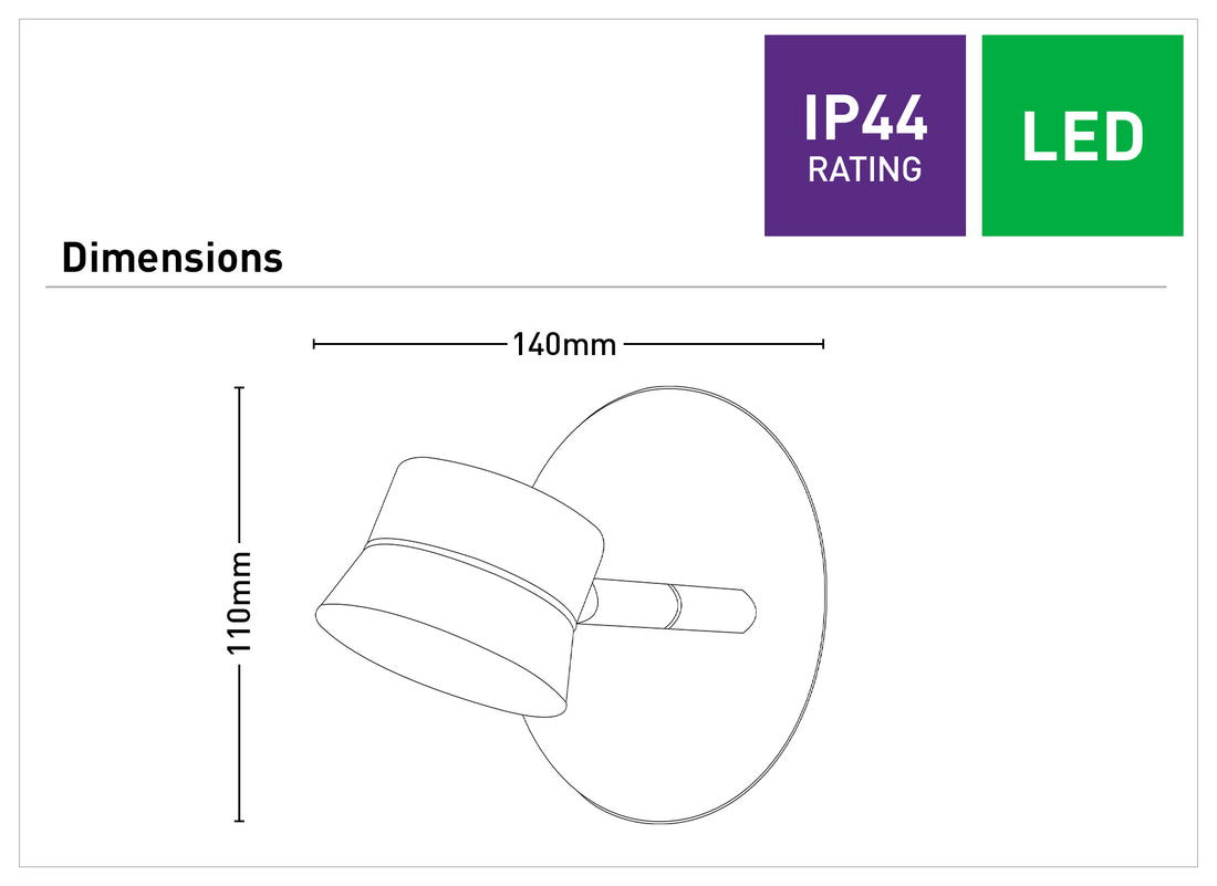 - IP44 rated - suitable for bathrooms