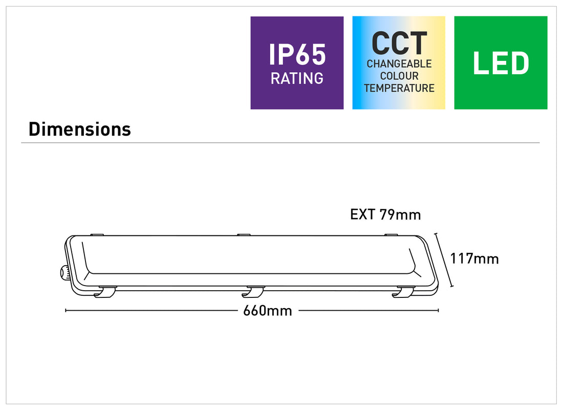 Wave Pro 60cm 10W/20W dual power Tri-proof LED Batten light